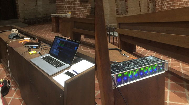 Uno de los requisitos fundamentales era optimizar la configuración global para una grabación en una iglesia. Nuestro objetivo era no poner nunca en riesgo la calidad del sonido y, al mismo tiempo, captar la acústica con la mayor fidelidad y precisión para el lugar con el sentido de aire que Kuniko quiere, para grabarlo todo sin errores en audio a 192 kHz/24 bits. Debido a que la aplicación de micro es totalmente digital con un resultado de audio de 192 kHz/24 bits, utilizar DMC 842 y MADiface XT iba a ser OBLIGATORIO y, sin duda, el mejor de los escenarios.