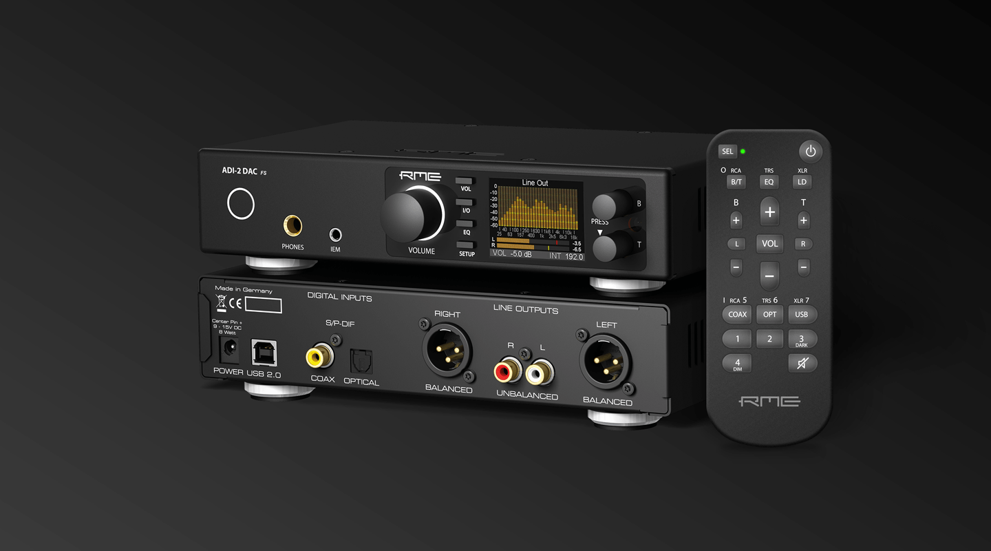 The current version of the ADI-2 DAC comes with an extended remote control, a further improved DA conversion and an adapted analog output stage for even better noise and distortion values. To address the home and HiFi users, RME exchanged some of the Pro's studio features with typical home and HiFi ones. With an adapted feature set and much simplified operation RME proudly presents the ADI-2 DAC. Built on the technology, concept and features of the ADI-2 Pro, the DAC concentrates on DA conversion in top high-end quality, along with two exceptional headphone and IEM outputs.