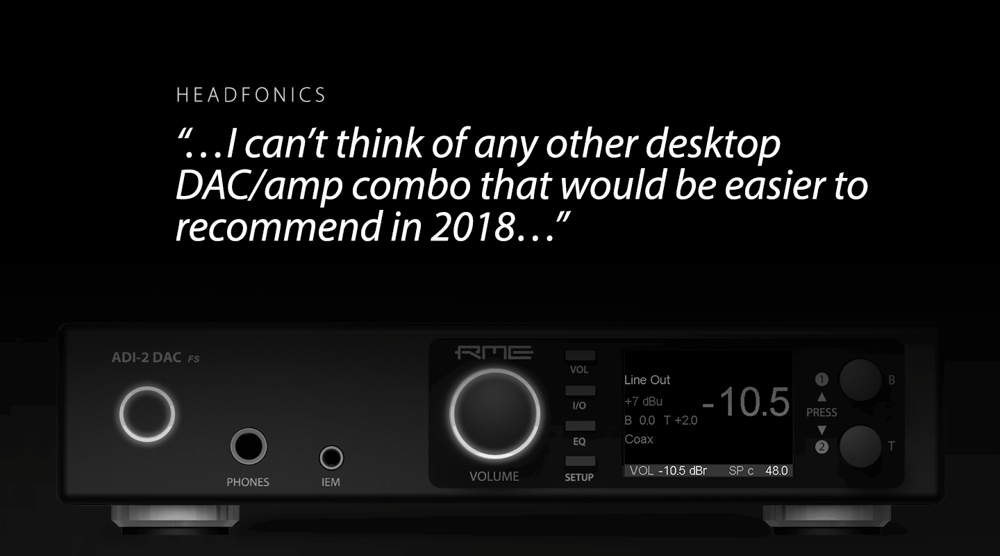 RME's solution: adding the most advanced IEM output imaginable as second phones connection to the front of the ADI-2 DAC. Its ground noise floor is an astounding 10 dB lower than the one of the Extreme Power output (black hole background…), output impedance is near zero Ohms, THD reaches new record lows, click-free on/off is included as well as volume ramp-up, and the sound quality with any IEM is just amazing. We're sure you will love it!