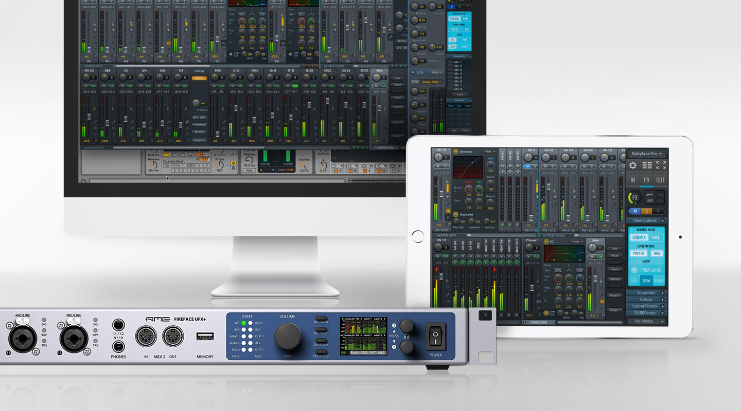 TotalMix FX for iPad adds full control over hardware mixer and DSP effects for Fireface UCX, UFX, 802, Babyface / Babyface Pro, UFX II, UFX +, MADIface Pro when in Class Compliant Mode and lets users create, store and load complete mixes directly from the iPad.